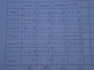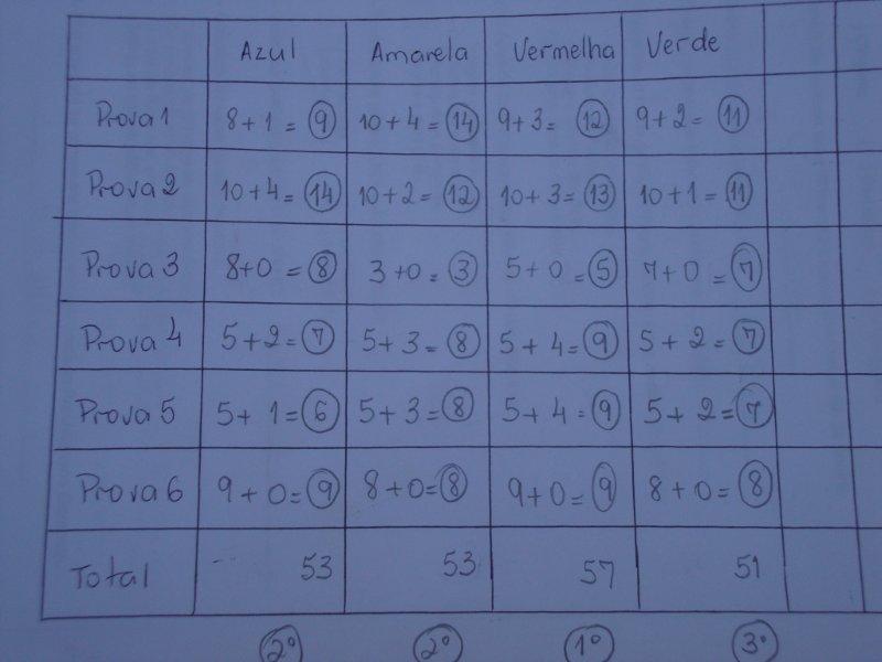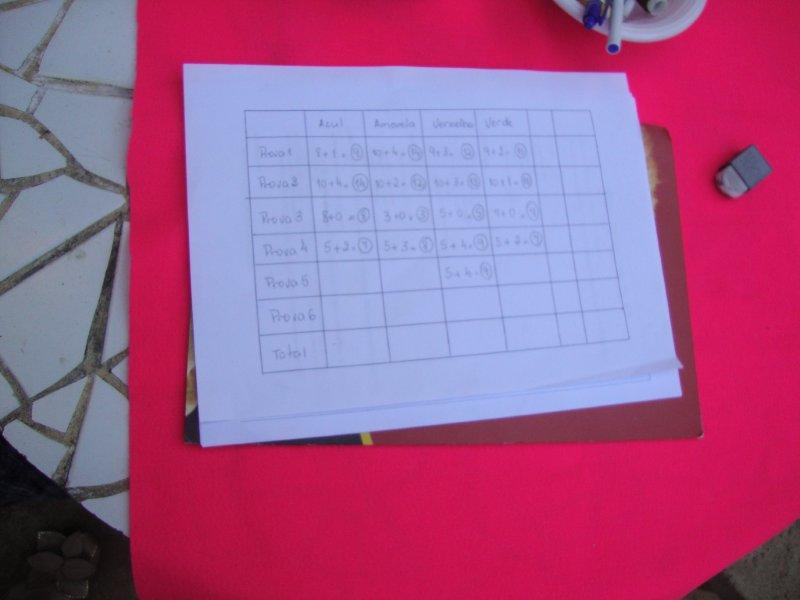 Terminada uma prova verificou-se os acertos ou o cumprimento da mesma, fazendo a contagem dos pontos e a anotação dos resultados. Somente após o término de uma prova é que foi permitido ir para a seguinte.