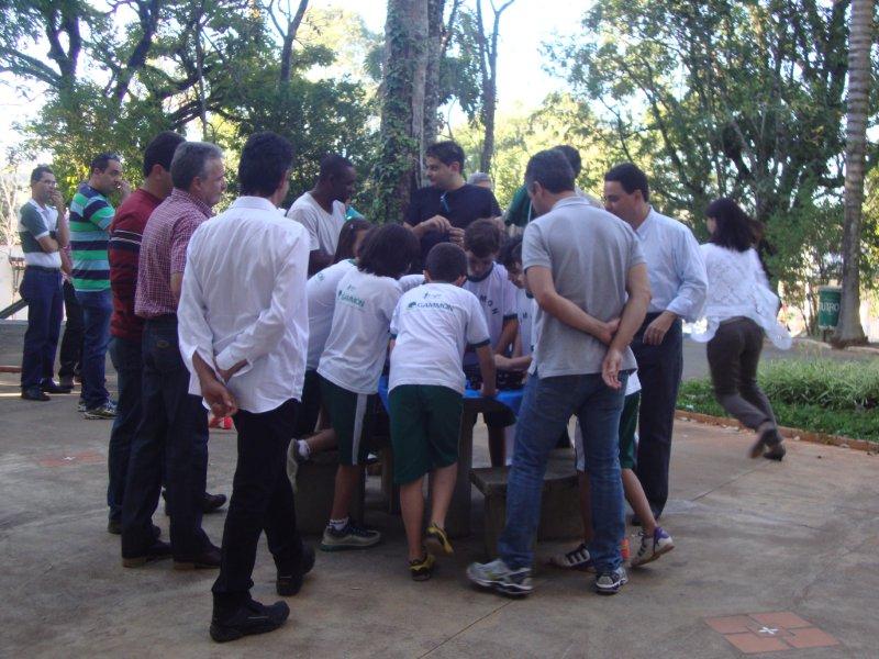 Os pais e seus respectivos filhos foram sorteados nas equipes e competiram juntos.